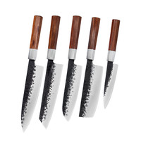 El yapımı dövme 5 adet mutfak bıçağı seti sekizgen sekizgen gülağacı kolu Metal inşaat ile profesyonel mutfak bıçağı